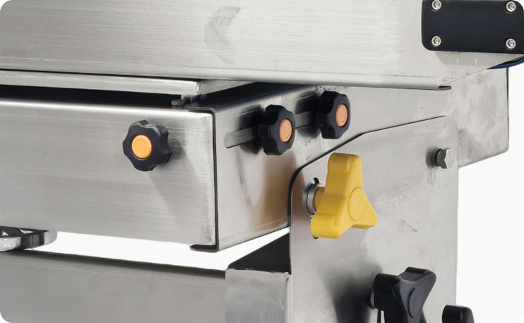 La position de la table de convoyage peut être réglée vers l'avant, vers l'arrière, vers le haut et vers le bas, et peut également être ajustée en fonction de la taille du produit.