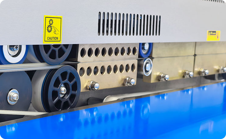 Conçue exclusivement pour les machines de scellage haut de gamme, cette technologie est équipée d'un ventilateur à haut débit. La texture de l'ouverture du sachet, pressée par la zone de thermocollage, est rapidement refroidie et mise en forme.